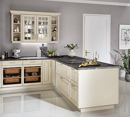 Castello brings a sense of heritage and elegance to the kitchen, inspired by classic manor-style design. With its richly profiled frame and soft matte finish, Castello is ideal for those seeking a refined, traditional look with enduring appeal.